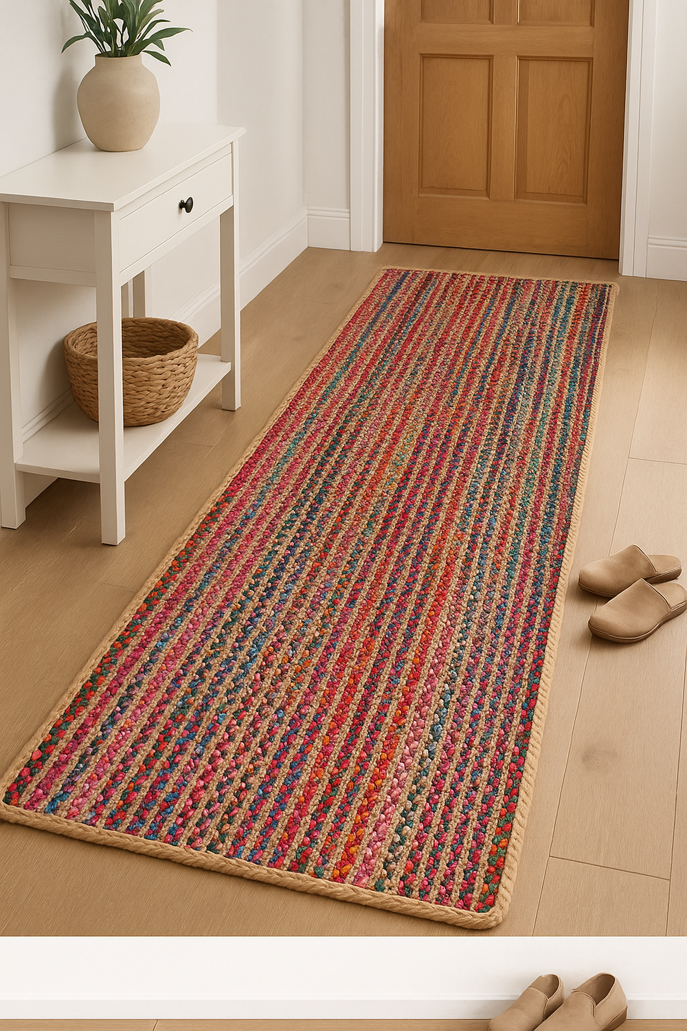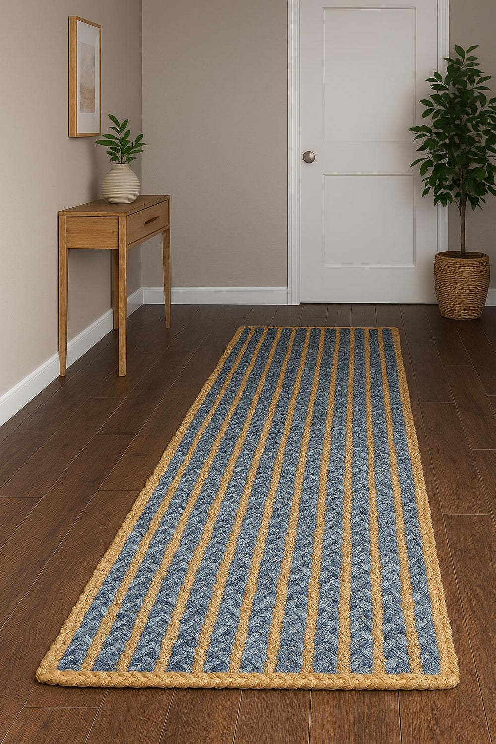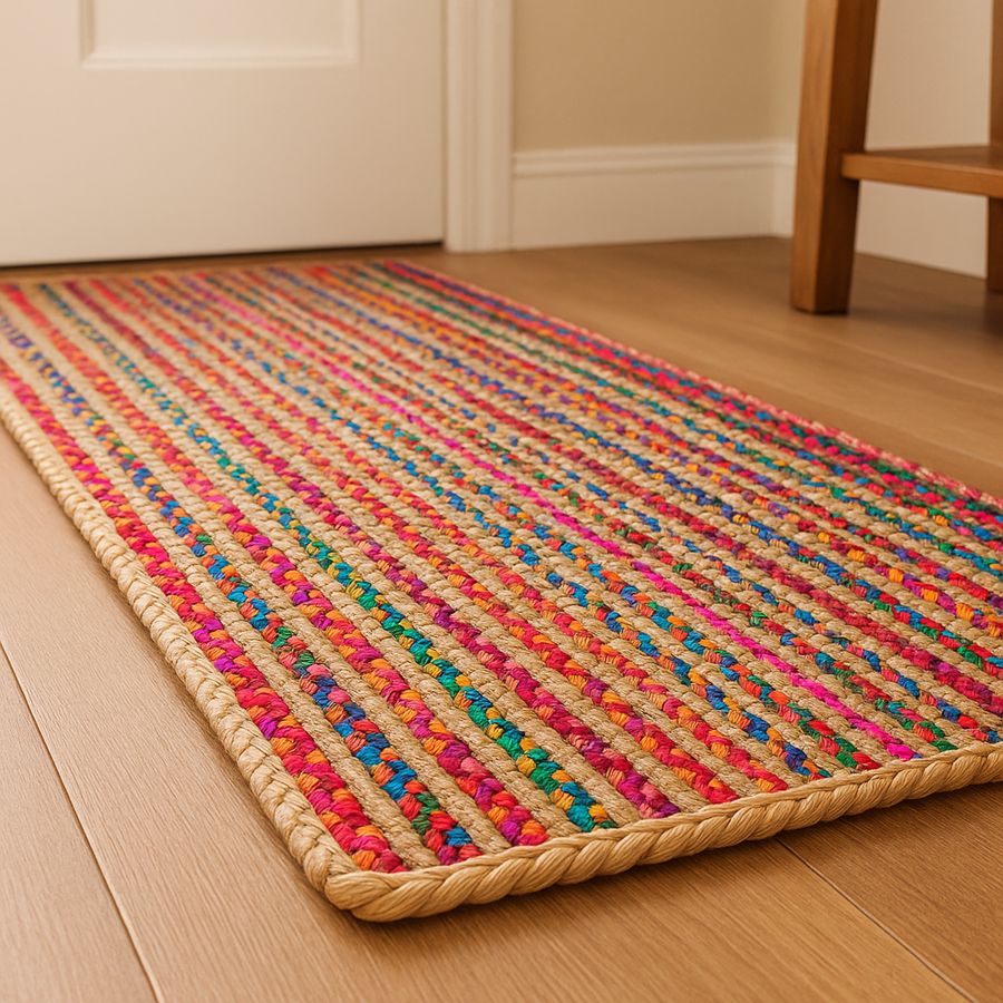 Handmade by Expert Artisans – Each runner rug is handwoven in India using recycled denim and natural jute, offering durability, authenticity, and eco-friendly design